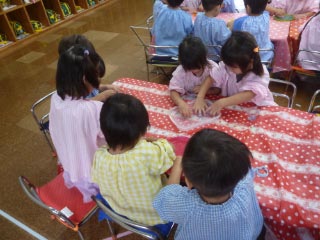 2024年10月10日 / 最終更新日 : 2025年9月5日 kchuou 行事のアルバム 寒天ゼリー遊び 今日は寒天ゼリーで遊びました 冷たくて気持ちいい~ プルプルで面白いッ みんなで遊ぶと楽しいね