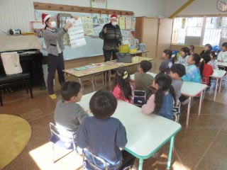 今日はMichael先生とキヨタ先生がサンタさんの帽子を被ってきてくれました![]()