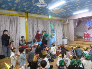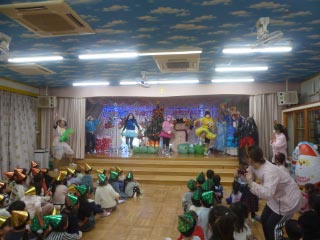 先生たちがお友達の大好きなキャラクターになりきって踊ったり、演技をしたりしました