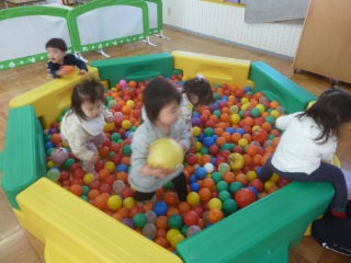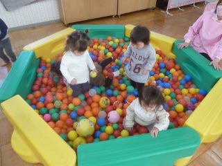 色とりどりのボールに興味津々で何度もボールを手に取って遊んでいました