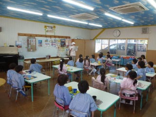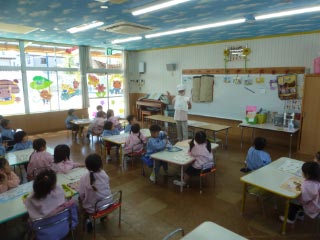 今日は給食の時のお約束やマナーをお勉強しましたみんな真剣に聞いていました